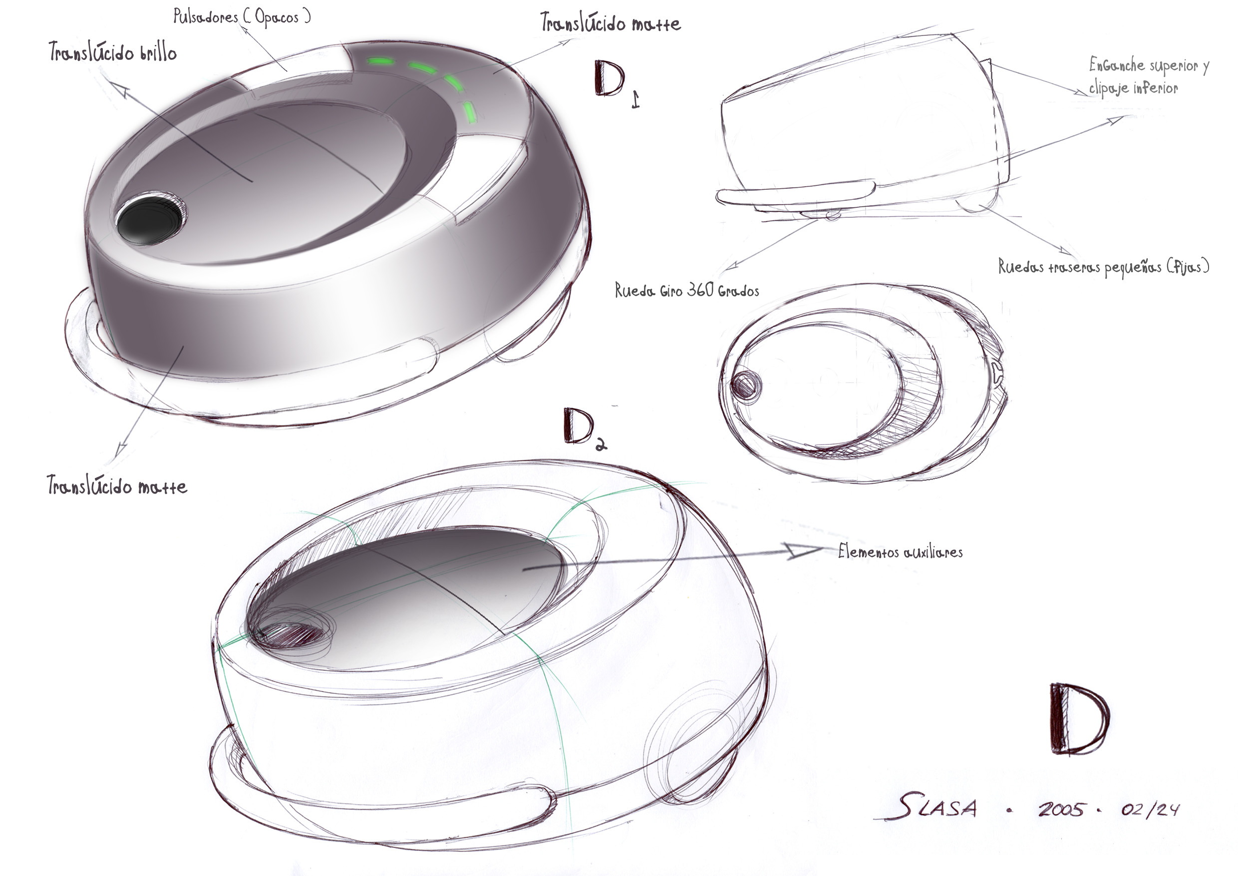 compacto y limpio. Las ruedas, revestidas de silicona transparente, preservan la integridad del suelo durante su uso. Diseño realizado en colaboración con el equipo de ADN DESIGN.