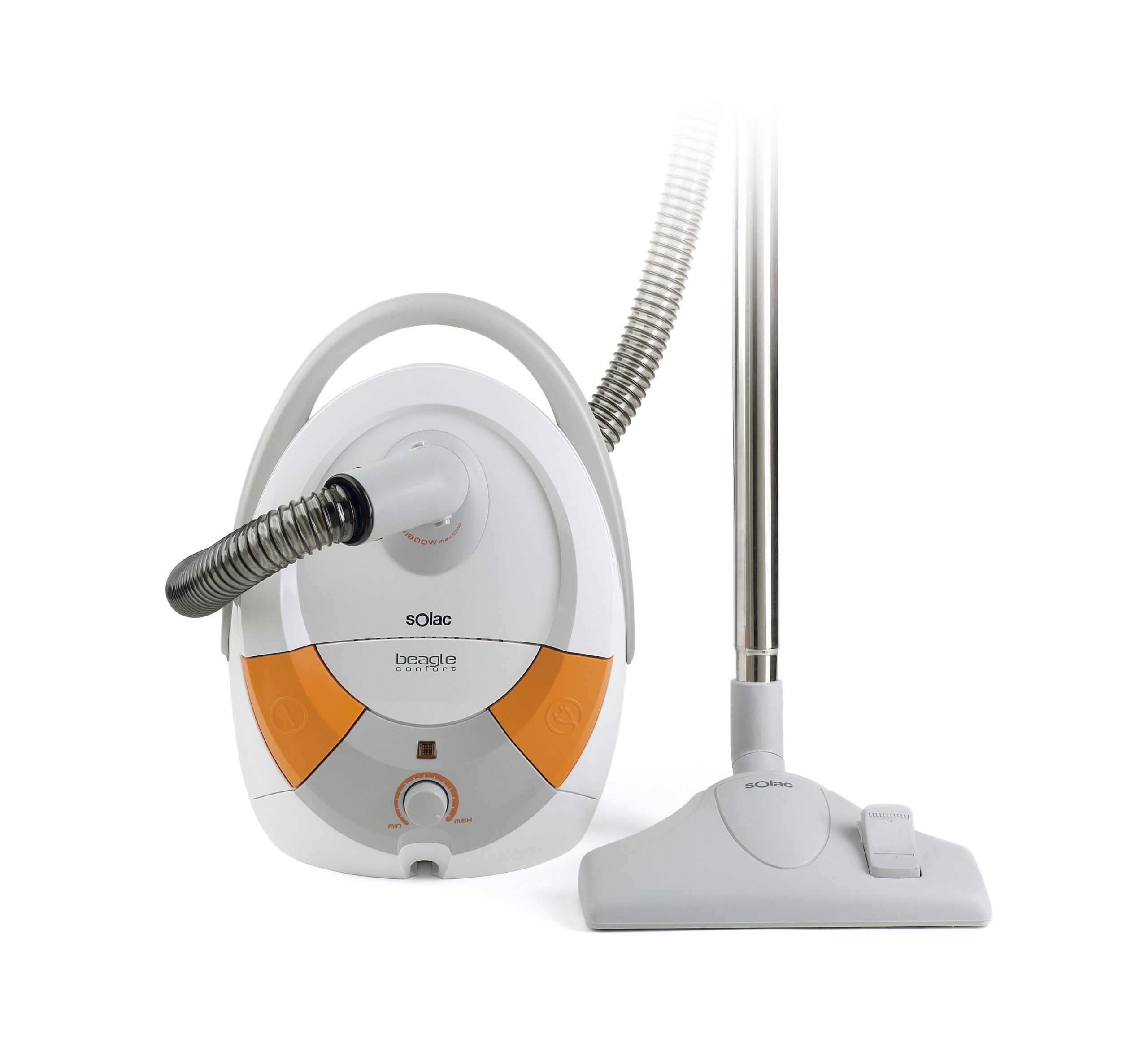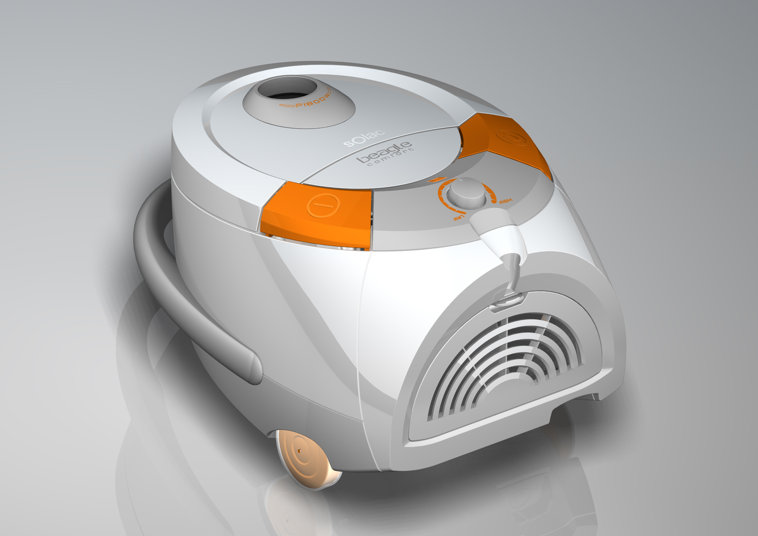 El diseño del aspirador Beagle de SOLAC plantea una configuración visual rotunda y sobria, no exenta de cierto carácter lúdico. Combina un volumen redondeado con cortes dinámicos, generando una estética moderna en armonía con el entorno en el que se desenvuelve. Se ha prestado especial atención a la selección de materiales para favorecer la resistencia, funcionalidad y usabilidad del producto sin comprometer la ligereza visual del producto.